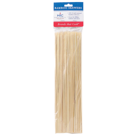 HIC Skewers, 12", bamboo (100 pack) (carded) (must be purchased in case quantities)