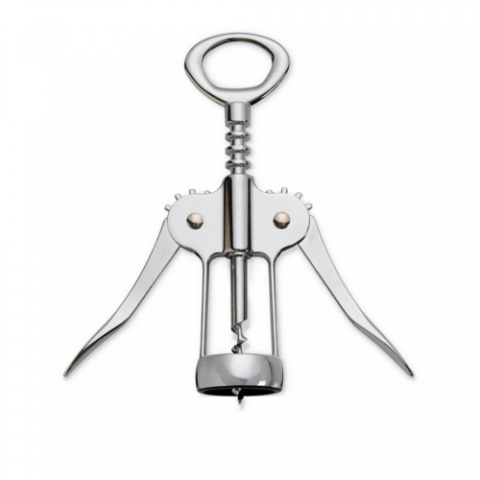 HIC Kitchen Winged Corkscrew, built-in bottle opener in the handle, chrome-plated zinc alloy
