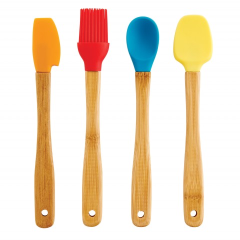 Mrs. Anderson's Baking® Mini Tool Set, includes (1) mini slim spatula, (1) mini basting brush, (1) mini spoon, (1) mini spatula, heat safe up to 440°F, bamboo handle, silicone (carded)