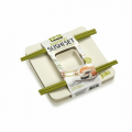 Joie Bamboo Sushi Serving Set, includes 2 bamboo sushi plates (6.5 x 6.5"), with built-in soy dishes (2 x 2"), and 2 pairs of reusable bamboo chopsticks (8")