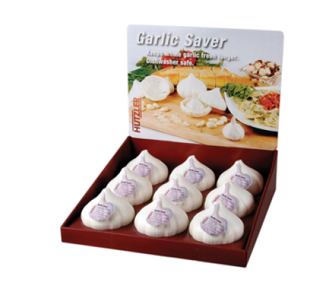 Hutzler Garlic Saver, plastic container to keep garlic fresh, garlic shaped (9 each total per display/case)