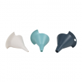 Hutzler Interlocking Funnels Display Set, Set Includes (3) interlocking: (1) 7 oz. (0.758 outer bottom stem diameter), (1) 5 oz. (0.572" outer bottom stem diameter), (1) 4 oz. (0.378" outer bottom stem diameter), heat safe (to 230-degrees Fahrenheit), dishwasher safe, BPA-free polyethylene, (Display of 9 sets)