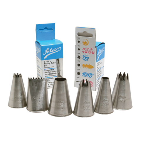 Ateco Pastry Tubes, assorted shapes, stainless steel tubes, (set of 6)