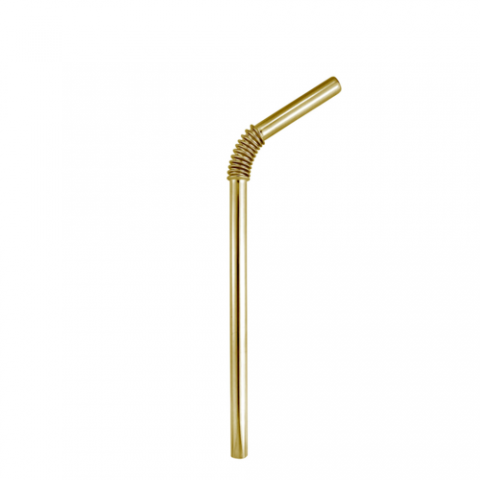 Turtleneck Straw Set, 8.66"L x .35"W, flexible neck, wide opening, includes cleaning brush, reusable, stainless steel, Gold finish (set of 4)