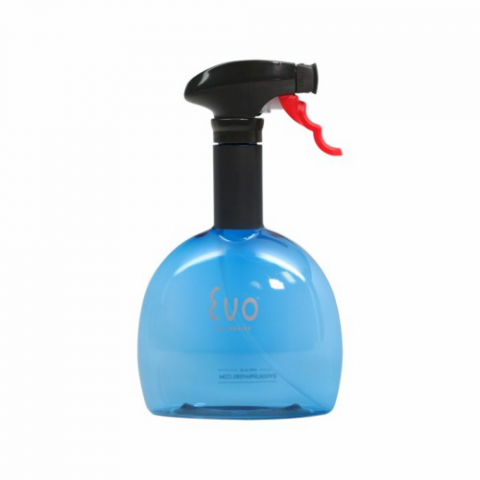 Evo Oil Sprayer Bottle, 18 oz., 2.50" x 5.75" x 9"H, 1.35-milliliters per spray, dispenses any cooking oil and vinegar in unique fan pattern, includes (3) reusable bands to label 5 popular cooking oils and balsamic vinegar, plus twist-on funnel; recyclable; hand wash in warm, soapy water, BPA-free, plastic, blue