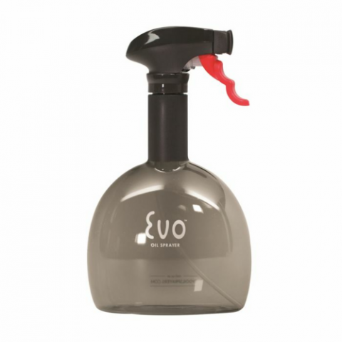 Evo Oil Sprayer Bottle, 18 oz., 2.50" x 5.75" x 9"H, 1.35-milliliters per spray, dispenses any cooking oil and vinegar in unique fan pattern, includes (3) reusable bands to label 5 popular cooking oils and balsamic vinegar, plus twist-on funnel; recyclable; hand wash in warm, soapy water, BPA-free, plastic, charcoal