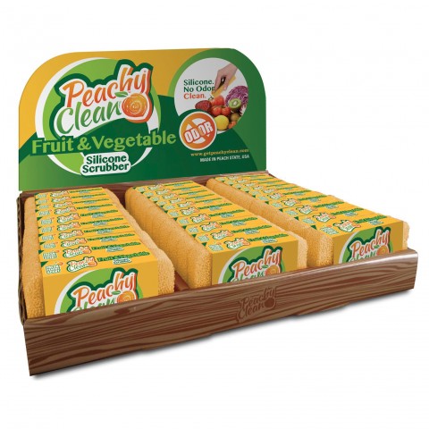Peachy Clean® Fruit & Vegetable Scrubber Pad, 4-1/2" x 2-3/4", dishwasher safe, silicone, yellow (carded) (30 each total per display/case)
