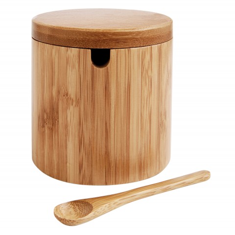 Helen's Asian Kitchen® Salt Box, 3-1/4" dia. x 3-1/4"H, round, with magnetic lid, includes (1) 5-1/2" spoon, bamboo