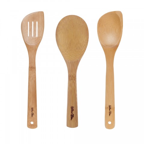 Helen's Asian Kitchen® Stir Fry Set, 3-piece, includes: 9" rice paddle, 13" slotted spatula, & 12" corner spoon, bamboo