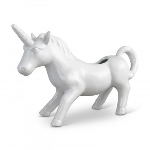 HIC Unicorn Creamer, 4 oz., 8" x 3" x 5", with handle, drip-free spout, microwave/oven/dishwasher safe, scratch-free glaze, porcelain, white