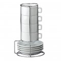 HIC Espresso Cup & Saucer Set, 9 pieces, includes (4) 4 oz. demi cups, (4) saucers & chrome rack, porcelain