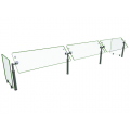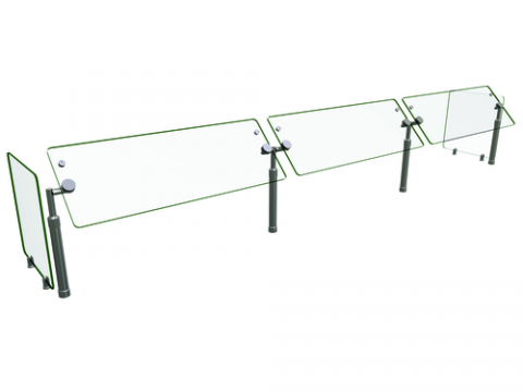 Flav-R-Shield® B950 Food Shield, adjustable self-service, 3 Bays 120"W x 18"D x 23"H, heat tempered glass construction throughout with 3/4" radius corners and polished edges, 3/8" thick glass front and side panels, 1" OD brushed 304 stainless steel posts, adjustable Face Panel rotation in 15-degree increments, NSF component, Made in the USA