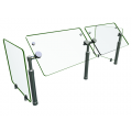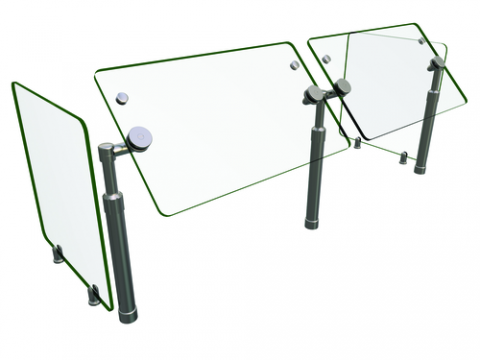 Flav-R-Shield® B950SWIVEL Food Shield, adjustable self-service, 2 Bays 48"W x 18"D x 23"H, heat tempered glass construction throughout with 3/4" radius corners and polished edges, 3/8" thick glass front and side panels, 1" OD brushed 304 stainless steel posts, adjustable Face Panel rotation in 15-degree increments, Bracket Heads on Face swivel 90 degrees up to 270 degrees to accomodate turns using multiple bays, NSF component, Made in the USA