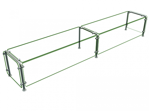 Flav-R-Shield® ED20 Food Shield, full service, 108"W x 18"D x 18"H, heat tempered glass construction throughout with 3/4" radius corners and polished edges, 3/8" thick glass top shelf, front panel and side panels, 1" OD brushed 304 stainless steel posts, NSF component, Made in the USA