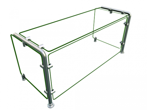 Flav-R-Shield® EP11 Food Shield, full service, 36"W x 15"D x 18"H, 1/4" thick heat tempered glass construction throughout with 3/4" radius corners and polished edges, glass top shelf, front and side panels, 1" OD brushed 304 stainless steel posts, NSF component, Made in the USA