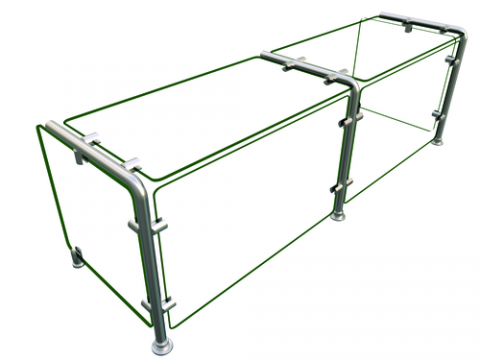 Flav-R-Shield® EP11 Food Shield, full service, 48"W x 15"D x 18"H, 1/4" thick heat tempered glass construction throughout with 3/4" radius corners and polished edges, glass top shelf, front and side panels, 1" OD brushed 304 stainless steel posts, NSF component, Made in the USA