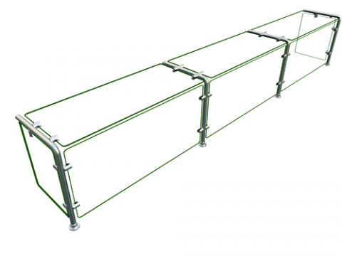 Flav-R-Shield® EP11 Food Shield, full service, 96"W x 12"D x 18"H, 1/4" thick heat tempered glass construction throughout with 3/4" radius corners and polished edges, glass top shelf, front and side panels, 1" OD brushed 304 stainless steel posts, NSF component, Made in the USA