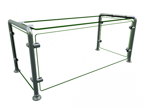 Flav-R-Shield® EP12 Food Shield, full service pass-over, 1 Bays 36"W x 18"D x 18"H, 1/4" thick heat tempered glass construction throughout with 3/4" radius corners and polished edges, glass top shelf, front and side panels with back posts, 1" OD brushed 304 stainless steel posts, NSF component, Made in the USA