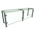 Flav-R-Shield® EP12 Food Shield, full service pass-over, 2 Bays 48"W x 12"D x 18"H, 1/4" thick heat tempered glass construction throughout with 3/4" radius corners and polished edges, glass top shelf, front and side panels with back post, 1" OD brushed 304 stainless steel posts, NSF component, Made in the USA