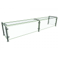 Flav-R-Shield® EP12 Food Shield, full service pass-over, 2 Bays 84"W x 18"D x 18"H, 1/4" thick heat tempered glass construction throughout with 3/4" radius corners and polished edges, glass top shelf, front and side panels with back posts, 1" OD brushed 304 stainless steel posts, NSF component, Made in the USA