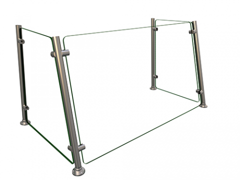 Flav-R-Shield® EP15 Food Shield, full service pass-over, 1 Bay 36"W x 18"D x 22"H, heat tempered glass construction throughout with 3/4" radius corners and polished edges, 1/4" thick glass front and side panels with front and back posts, 1" OD brushed 304 stainless steel posts, front posts tilted back to an 80 degree angle, NSF component, Made in the USA