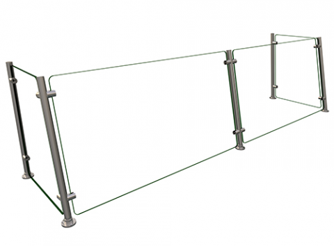 Flav-R-Shield® EP15 Food Shield, full service pass-over, 2 Bays 72"W x 18"D x 22"H, heat tempered glass construction throughout with 3/4" radius corners and polished edges, 1/4" thick glass front and side panels with front and back posts, 1" OD brushed 304 stainless steel posts, front posts tilted back to an 80 degree angle, NSF component, Made in the USA