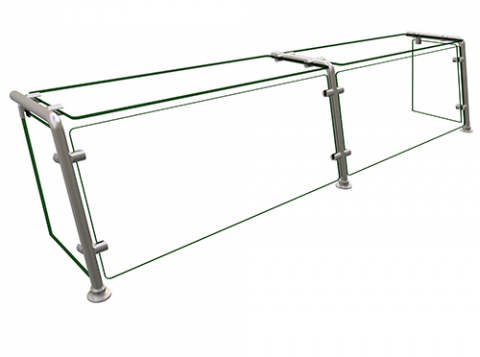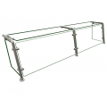 Flav-R-Shield® EP21 Food Shield, full service pass-over, 2 Bays 72"W x 12"D x 18"H, 1/4" thick heat tempered glass construction throughout with 3/4" radius corners and polished edges, glass top shelf, front and side panels, 1" OD brushed 304 stainless steel posts, front post tilted back to an 80 degree angle, NSF component, Made in the USA