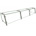 Flav-R-Shield® EP21 Food Shield, full service pass-over, 3 Bays 96"W x 18"D x 18"H, 1/4" thick heat tempered glass construction throughout with 3/4" radius corners and polished edges, glass top shelf, front and side panels, 1" OD brushed 304 stainless steel posts, front posts tilted back to an 80 degree angle, NSF component, Made in the USA