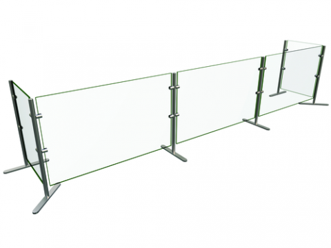Flav-R-Shield® EP6 Food Shield, portable, 3 Bays 120"W x 18"D x 27.5"H, heat tempered glass construction throughout with square corners and polished edges, 1/4" thick glass front and side panels, 1" OD brushed 304 stainless steel posts, NSF component, Made in the USA