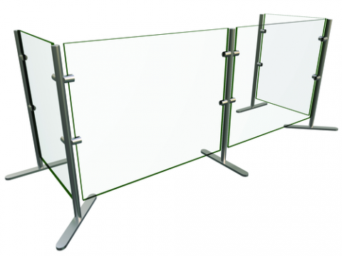 Flav-R-Shield® EP6 Food Shield, portable, 2 Bays 60"W x 18"D x 27.5"H, heat tempered glass construction throughout with square corners and polished edges, 1/4" thick glass front and side panels, 1" OD brushed 304 stainless steel posts, NSF component, Made in the USA