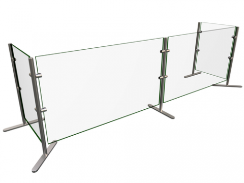 Flav-R-Shield® EP6 Food Shield, portable, 2 Bays 84"W x 18"D x 27.5"H, heat tempered glass construction throughout with square corners and polished edges, 1/4" thick glass front and side panels, 1" OD brushed 304 stainless steel posts, NSF component, Made in the USA