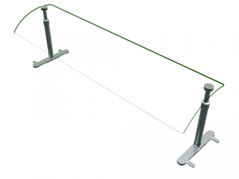 Flav-R-Shield® EP950 Portable Food Shield, self service, 60"W x 14"D adjustable rounded 1/4" thick acrylic panel, 1" OD brushed 304 stainless steel posts and mounting feet adjustable from 13 to 24" height, NSF component, Made in the USA