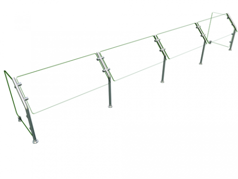 Flav-R-Shield® ES31 Food Shield, self service, 132"W x 18"D x 22"H, heat tempered glass construction throughout with 3/4" radius corners and polished edges, 3/8" thick glass top shelf, 1/4" thick glass front and side panels, 1" OD brushed 304 stainless steel posts, NSF component, Made in the USA