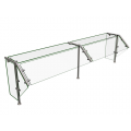 Flav-R-Shield® ES40 Food Shield, self service, 2 Bays 84"W x 20"D x 24"H, heat tempered glass construction throughout with 3/4" radius corners and polished edges, 1/4" thick glass top shelf, glass front and set of end panels, 1" OD brushed 304 stainless steel posts, NSF component, Made in the USA