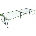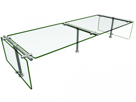 Flav-R-Shield® ES53 Food Shield, stationary double-sided self service, 2 Bays 48"W x 20"D x adjustable up to 54"H, heat tempered glass construction throughout with 3/4" radius corners and polished edges, 3/8" thick glass top shelf and end panels, 1" OD brushed 304 stainless steel posts, NSF component, Made in the USA