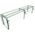 Flav-R-Shield® ES90 Food Shield, self-service, 84"W x 24"D x 22.63"H, heat tempered glass construction throughout with 3/4" radius corners and polished edges, 3/8" thick glass top shelf, adjustable front panel and side panels, 1" OD brushed 304 stainless steel posts, NSF component, Made in the USA