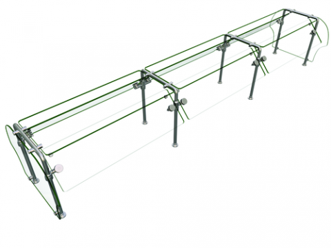 Flav-R-Shield® ES92 Food Shield, double-sided self-service, 120"W x 38"D x 23"H, 3/8" thick heat tempered glass construction throughout with 3/4" radius corners and polished edges, glass top shelf, adjustable front panels, side panels, 1" OD brushed 304 stainless steel posts, NSF component, Made in the USA