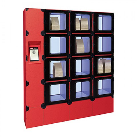 Flav-R 2-Go™ Food Locker System, floor mount, 62-7/50" W, (12) lockers, magnetically locked hinged doors, heated base, 150°F to 180°F temperature range, 10" touchscreen, LED lighting, individual timers, 1239 watts, 10.8 amps, 120v/60/1-ph, NEMA 5-15P, cULus, UL EPH Classified, Made in USA