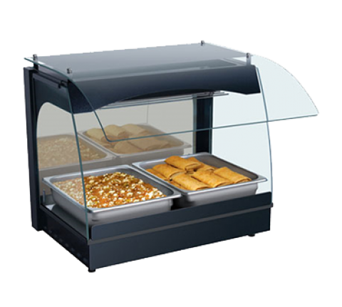 Glo-Ray™ Curved Merchandising Warmer, 22-1/8" wide, single-deck, mirrored glass back panel, thermostatic control with rocker off/on switch, Xenon light, specify finish, cULus, UL EPH Classified, Made in USA