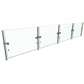Flav-R-Shield® ORBIT100 Food Shield, full service pass-over, 4 Bays 132"W x 2"D x 18"H, heat tempered glass construction throughout with 3/4" radius corners and polished edges, adjustable 3/8" thick front panel with roatating face panel and additional circular openings for optimum high adjustment, 1" OD brushed 304 stainless steel posts with mounting feet, NSF component, Made in the USA