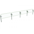 Flav-R-Shield® ORBIT360 Food Shield, self service, 4 Bays 132"W x adjustable 2-14"D x 23"H, heat tempered glass construction throughout with 3/4" radius corners and polished edges, adjustable 3/8" thick front panel with roatating face panel and additional circular openings for optimum high adjustment, 1" OD brushed 304 stainless steel posts with mounting feet, NSF component, Made in the USA