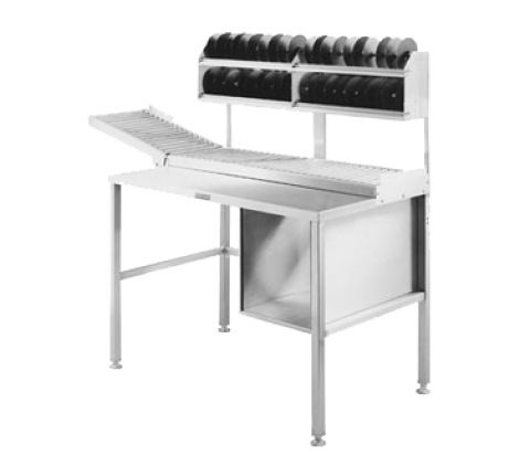 Roller/Discharge Table, 36” long work area, 48” long 28” high adjustable conveyor