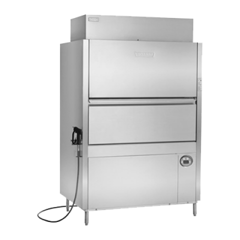 Advansys™ Ventless Pot/Pan/Utensil Washer with Energy Recovery, front loading with split door design, 480v/60/3, (20) pan capacity, over/under rotating arms, 2/4/6 minute adjustable timer, up to (13) racks/hour, includes: (2) flat grids, (2) tray racks & (1) flat bottom rack, pre-rinse spray hose, sanitizing with Sense-A-Temp™ 70° booster rise, internal condensing system, Complete Delime™ with Delime Notification, Auto Dispensing, and Booster Guard™, stainless steel construction, cULus, BISSC Certified, NSF, ENERGY STAR®, Free factory startup for installations within a 100 mile radius of a Hobart service office; installation beyond 100 miles will be charged at the quoted rate by the local Hobart service office