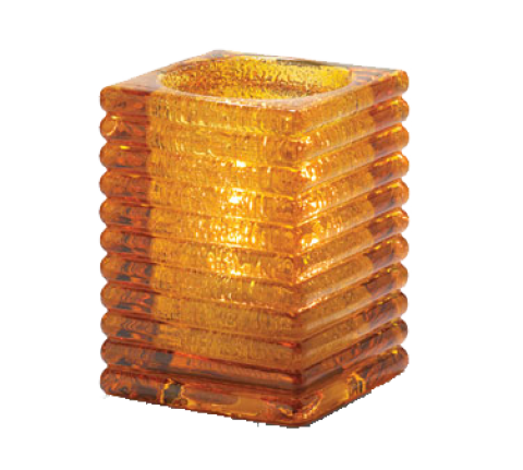 Rib Block Lamp, 2-7/8"W x 4-1/8"H, horizontal, square, accommodates Hollowick's HD12, HD17 or HD26 disposable fuel cells, glass, amber jewel