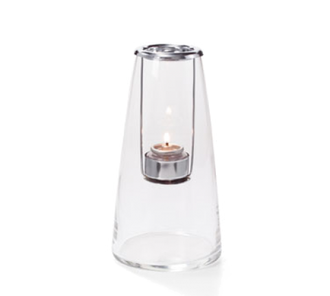 Lighthouse™ Lamp, 4" dia. x 8-1/4"H, hanging tealight holder, accommodates Hollowick's HD8 disposable fuel cell, hand-blown glass, clear