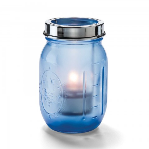 Firefly™ Candle Lamp, 5-1/4"H x 3" dia., hanging tealight cradle™, accommodates Hollowick's HD8 fuel cells, glass canning jar, satin dark blue
