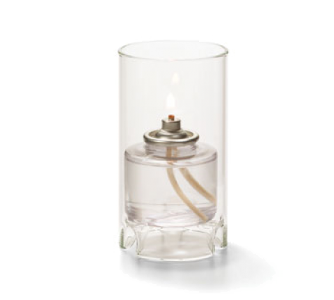 Miniature Glass Cylinder™ Lamp, 4-3/8"H x 2-3/8" dia., accommodates Hollowick's HD17 or HD26 disposable fuel cell, one-piece, clear