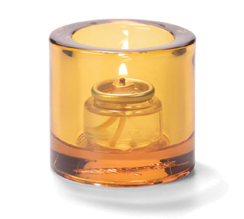 Tealight Lamp, 2-3/4" dia. x 2-7/8"H, round, thick glass, accommodates Hollowick's HD8 disposable fuel cell, amber