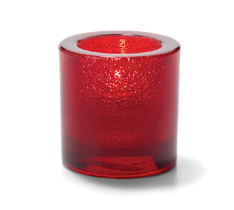 Tealight Lamp, 2-3/4" dia. x 2-7/8"H, round, thick glass, accommodates Hollowick's HD8 disposable fuel cell, ruby jewel