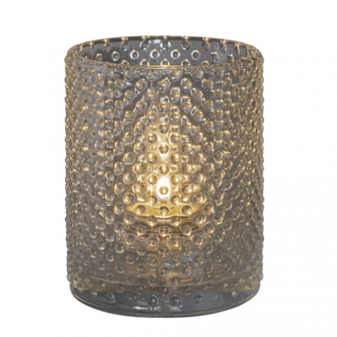 Knobby Votive Lamp, 3.125" dia. x 3.875"H, cylinder, glass, clear, Hollowick (minimum = case quantity) (NON STOCK item)